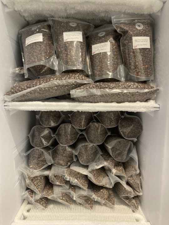 George Howell, who in my opinion is the godfather of specialty coffee and was very instrumental in developing cupping scoring, freezes his coffee. Both for the Green beans and after roasting for his coffee business in Boston: